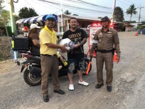 ก.ต.ตร.สภ.วังม่วง ร่วมกับ ตร.สภ.วังม่วง แจกหมวกกันน็อค
