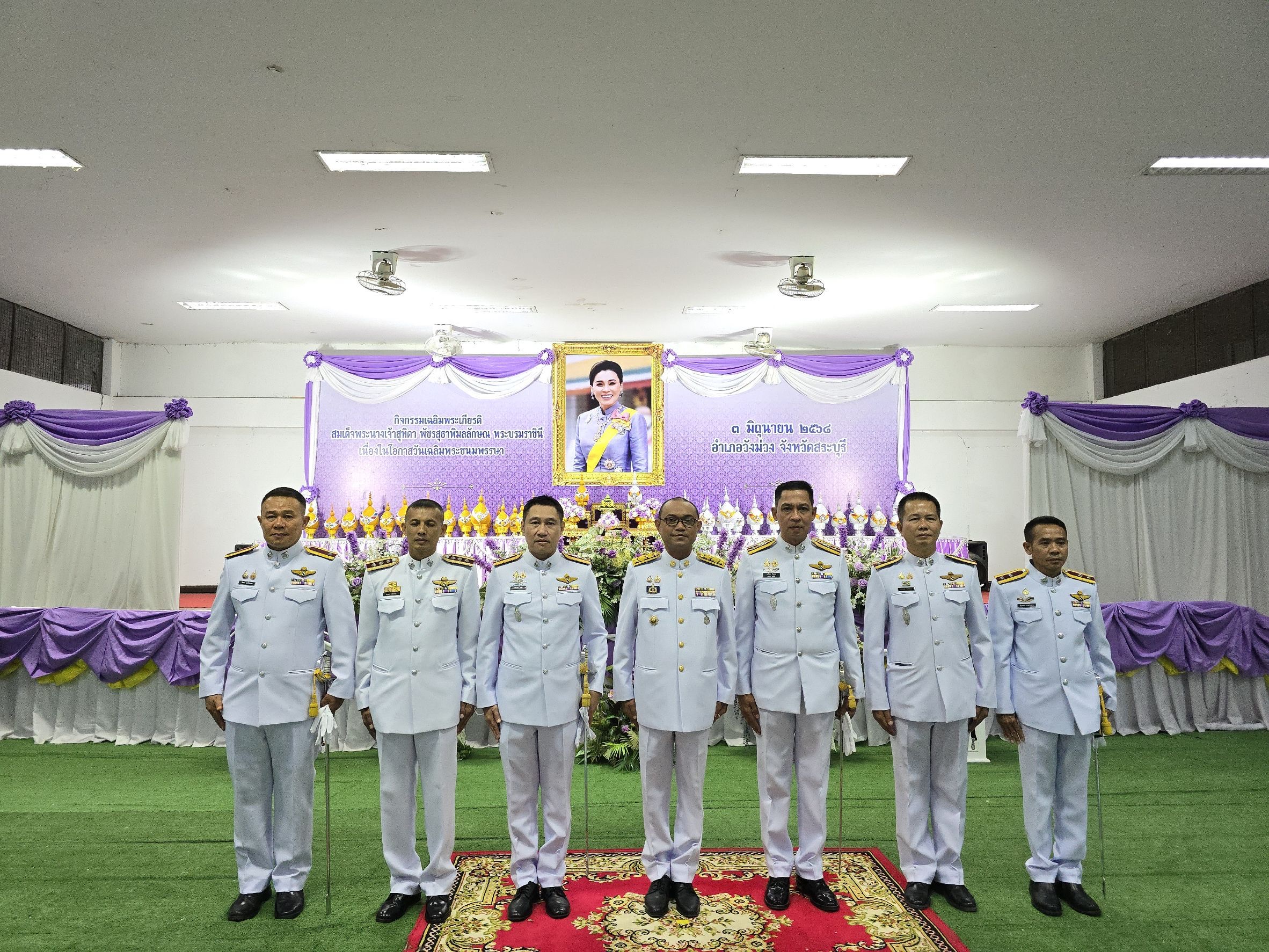 พิธีถวายเครื่องราชกสักการะ วางพานพุ่ม และจุดเทียนถวายพระพรชัยมงคล เนื่องในโอกาสมหามงคลวันเฉลิมพระชนมพรรษา สมเด็จพระนางเจ้าสุทิดา พัชรสุธาพิมลลักษณพระบรมราชินี 3 มิถุนายน 2568 เพื่อเป็นการแสดงความจงรักภักดี ณ หอประชุมที่ว่าการอำเภอวังม่วง จ.สระบุรี