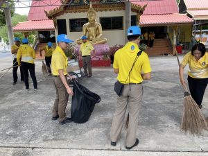 1. ร่วมกันปรับปรุงภูมิทัศน์ กวาดใบไม้ ตัดหญ้า และทำความสะอาดศาสนสถาน