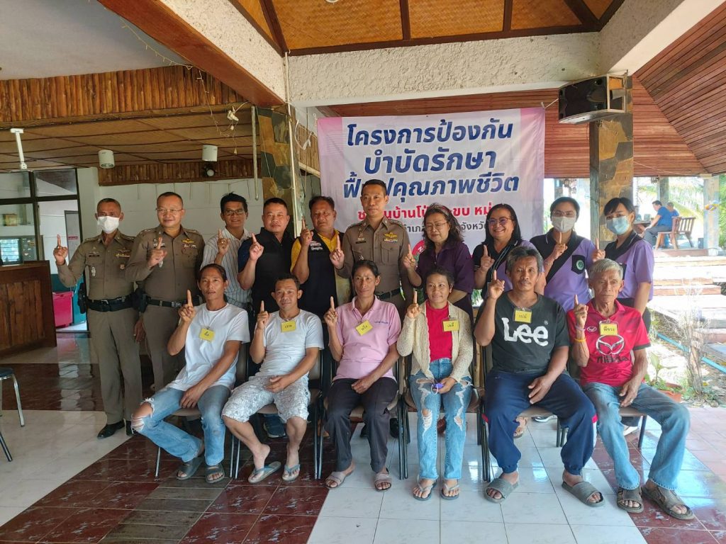 พ.ต.อ.สุรพจน์ รอดบำรุง รอง ผบก.ภ.จว.สระบุรี ท่าน สจ. อรพินธ์ โรจนะ ตรวจเยี่ยมโครงการให้คำแนะนำ คณะทำงานให้กำลังใจผู้เข้ารับการบำบัด โครงการชุมชนยั่งยืนหมู่บ้านโปร่งตะขบ