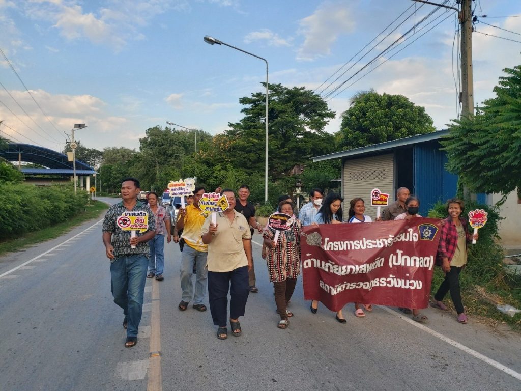 พ.ต.อ.จตุรงค์ สมศรี ผกก.สภ.วังม่วง พร้อมด้วยชุดชุมชนยั่งยืน สภ.วังม่วงและประชาชนบ้านปากน้ำร่วมเดินรณรงค์และประชาสัมพันธ์ต้านภัยยาเสพติดในหมู่บ้านปากน้ำ หมู่ที่ ๓ ต.คำพราน อ.วังม่วง จ.สระบุรี