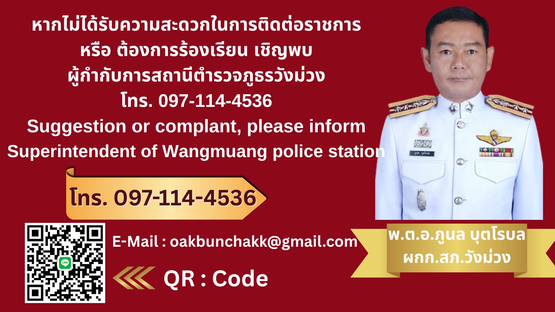 แจ้งเรื่องร้องเรียนกับผู้กำกับการสถานีตำรวจภูธรวังม่วง