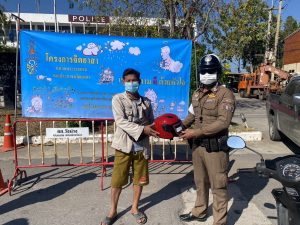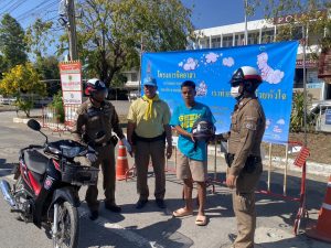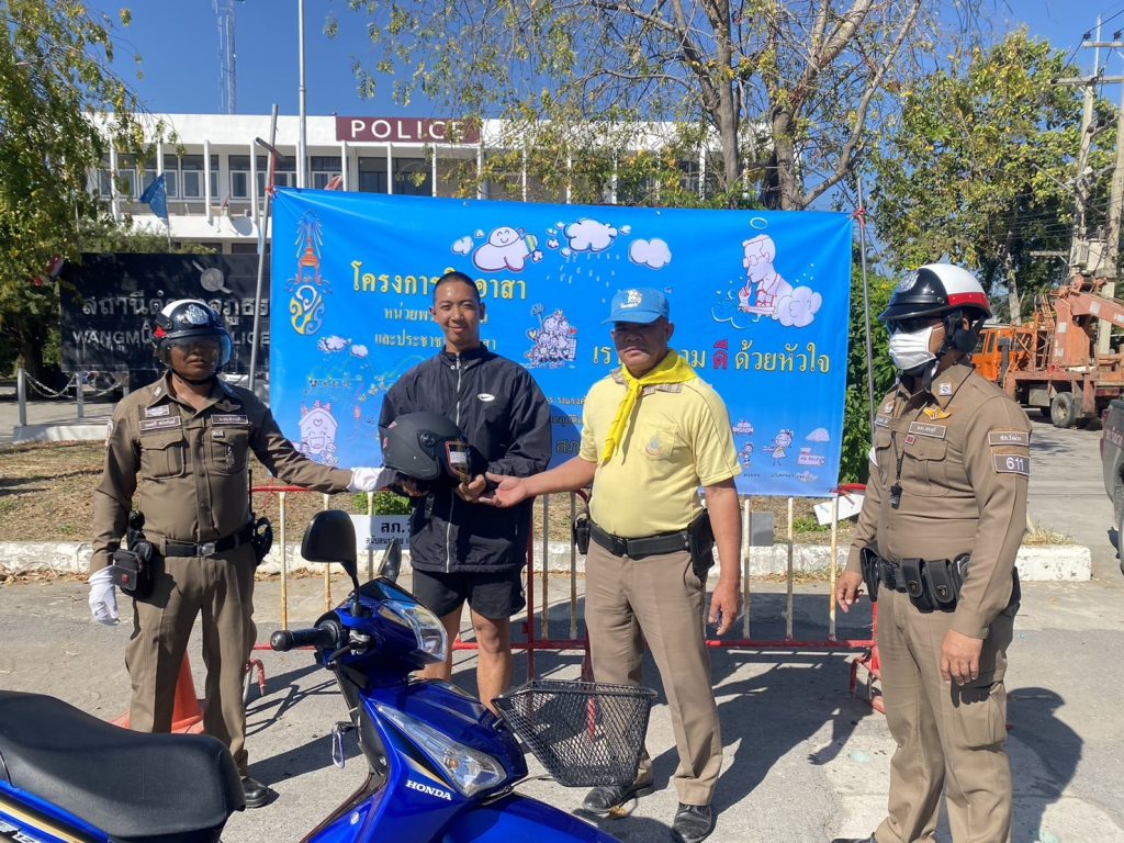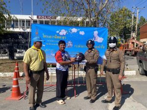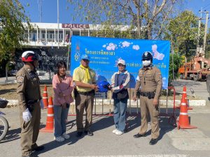 โดยแจกหมวกนิรภัยให้กับประชาชนที่ไม่สวมหมวกนิรภัย ให้ความรู้ด้านกฎหมายและการขับขี่ พร้อมทั้งให้นำไปขยายผลให้กับคนในครอบครัว ชุมชน ให้ขับขี่ปลอดภัยต่อไป โดยมีผู้เข้าร่วมโครงการจำนวน 9 ราย